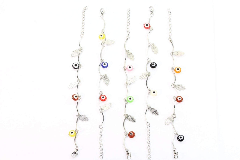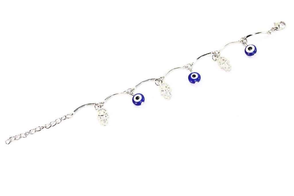 A pretty and delicate silver tone bracelet with 2 spiritual symbols working together to protect you from jealousy, negativity and bad energy! The divine Hamsa Hand, also known as the Hand of Fatima and the Evil Eye are widely worn to defend against these unwelcome energies.